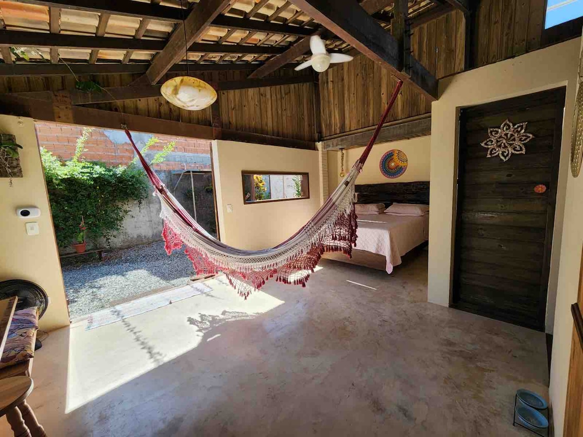 Chalet con altillo, sala de estar y cocina. Tiene aire acondicionado. Cerca de las principales playas (a 4 km de la playa de Ubatuba y a 8 km de la playa de la ensenada). Lugar acogedor, en medio de la naturaleza.