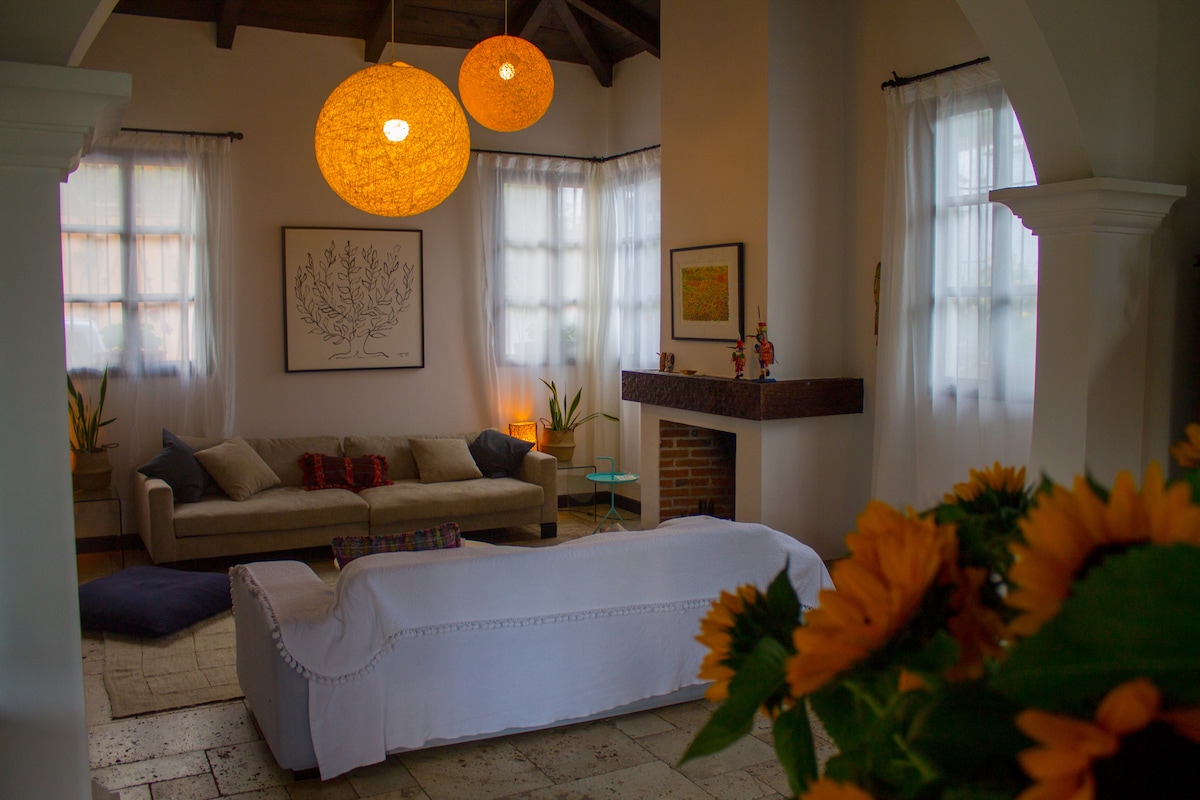 Apartamento completo con un lindo jardín interno. Podrás aprovechar al máximo tu estadía al estar en un lugar céntrico y al mismo tiempo relajarte en un lugar tranquilo con jardín. Ubicado a 20 minutos del aeropuerto Internacional La Aurora, a 10 minutos de zonas de restaurantes, hospitales y cerca de transporte público, que lleva directamente al Centro Histórico. A la par del alojamiento se encuentra una tienda de conveniencia y a dos cuadras se encuentra un supermercado Torre Express
