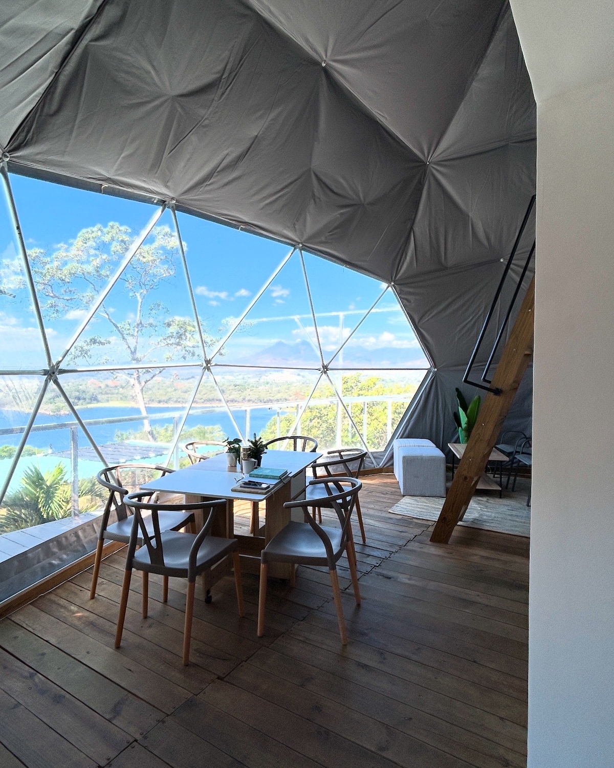 Disfruta del Glamping (Camping glamouroso) en nuestro Domo geodésico. Tendrás una hermosa vista de la Laguna de El Pino y los volcanes de Pacaya y Agua al frente. Perfecto para un escape en pareja o en familia, o simplemente para vivir una nueva experiencia. Disfrutarás de la naturaleza sin perder las comodidades a las que estás acostumbrado.