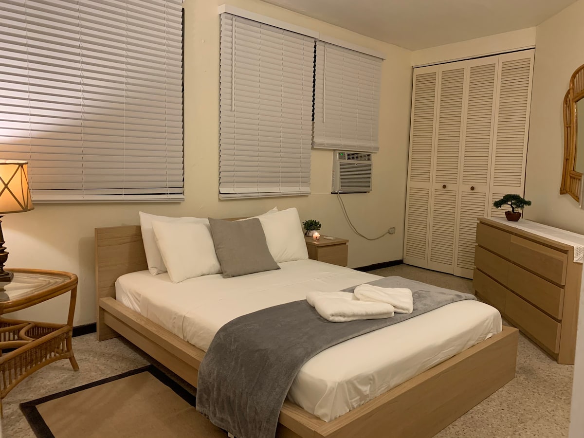 Cómoda y bien equipada casa con dos dormitorios, cada uno con aire acondicionado y una cama de tamaño completo. La propiedad incluye un baño completo, una cocina totalmente equipada, una sala familiar con TV y Wi-Fi, y lavandería para mayor comodidad. Con una ubicación ideal cerca del centro de la ciudad de Guayama, con fácil acceso a centros comerciales, tiendas locales, campos de golf, playas, el paseo marítimo y restaurantes. Un espacio práctico y acogedor diseñado para que te sientas como en casa durante tu estadía.