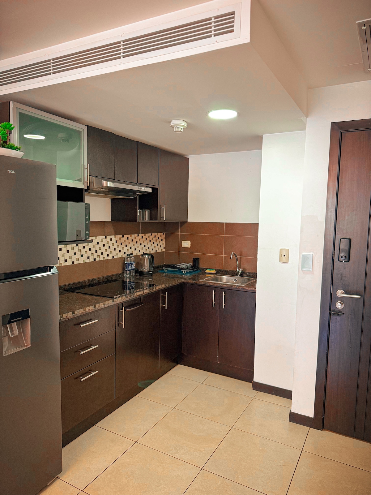 Suite full amoblada y renovada ideal para extranjeros y ejecutivos. Acabados de lujo. Cama queen size, sofá cama, smart-tv en sala y habitacion, wi-fi. Queda ubicado en una las zonas mas prestigiosas y a 3 minutos del aeropuerto. Cuenta con recepción disponible 24h. Cerca de cines, bancos, restaurantes, hoteles, supermercados, hospital y centros comerciales. Tiene lavadora y secadora, cocina eléctrica, refrigeradora, microondas, cafetera, tostadora y utensilios de cocina.