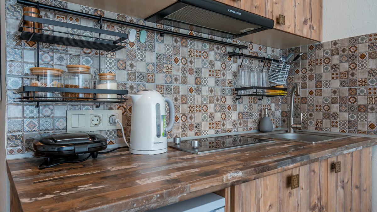 Disfruta de Netflix, juegos de mesa, libros y una maravillosa vista a la montaña del apartamento estudio en New Gudauri, loft 2 con acogedor balcón. Un lugar perfecto para amigos o familiares está a unos 50 metros del telesilla principal de Góndola. El precio incluye wifi, caja fuerte, Skyy-depot y recepción las 24 horas del día, los 7 días de la semana. El apartamento cuenta con una pequeña cocina bien equipada con centro de inducción, microondas, sandwichera, tetera eléctrica y nevera. Hay un baño con ducha.