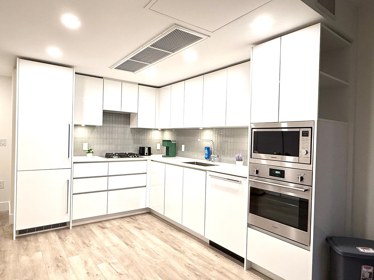Disfruta de la ciudad desde un lugar de puro confort. Este amplio departamento de diseño de más de 1000 pies cuadrados combina un estilo de alta gama con la máxima comodidad. Ya sea que estés aquí por negocios o por una escapada a la ciudad, te encantarán los muebles de lujo, la cocina lista para el chef y dos televisores inteligentes enormes para las mejores noches de cine. Ubicado a pocos minutos del SkyTrain, puedes llegar al corazón del centro de Vancouver en poco tiempo, y luego retirarte a tu santuario tranquilo y exclusivo.