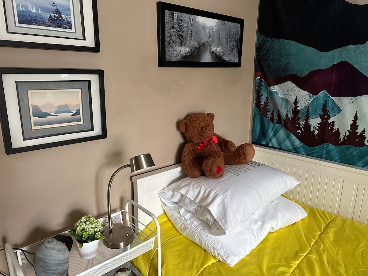 Disfruta de una experiencia de lujo en este céntrico alquiler vacacional. Entrada privada a nivel de la calle con mucho aparcamiento gratuito. Cada habitación cuenta con hermosas obras de arte, flores frescas y detalles de diseño únicos. Disfruta de una hermosa estancia en nuestra casa adosada de 3 pisos, 3 dormitorios y 3 baños. Tendrás el espacio entero para ti. A poca distancia a pie de todo lo que querrías en el histórico Fort Langley (río, cafeterías, museos, cafés, boutiques, tienda de comestibles, senderos para caminar, tiendas de antigüedades, mercado de agricultores, etc.).