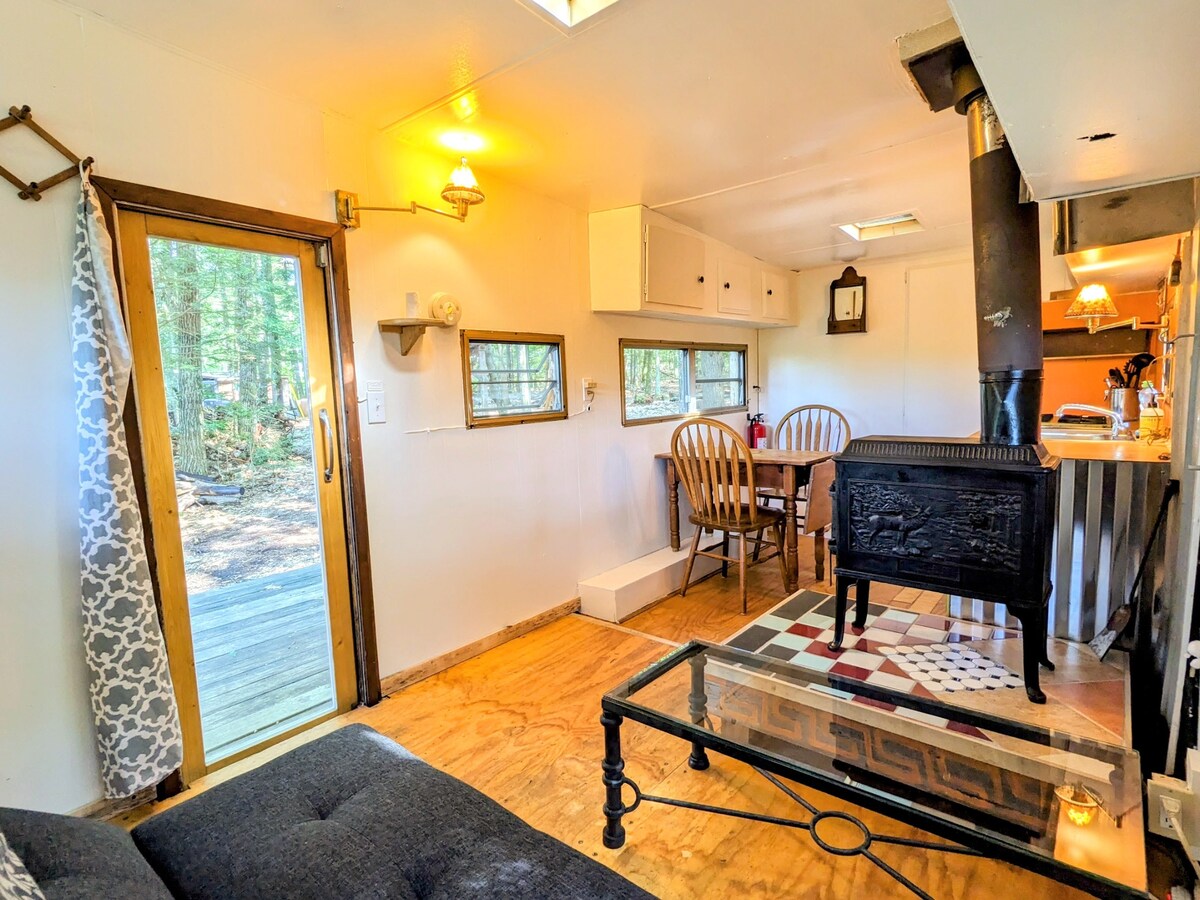 Disfruta de una caravana convertida como tu escapada privada en el sur de Vermont. A menos de 10 minutos del centro de Brattleboro, pero ubicado en el bosque para un refugio tranquilo. Cocina completa y salón. Estufa de leña para calefacción principal (respaldo eléctrico para días no tan fríos). Los espacios al aire libre incluyen chimenea, terraza, mesa de billar, ducha caliente al aire libre, letrina (inodoro de compostaje) y bosque para galavanting. El lugar es perfecto para dos adultos (cama tamaño queen) y un niño (sofá plegable de 63" de largo).