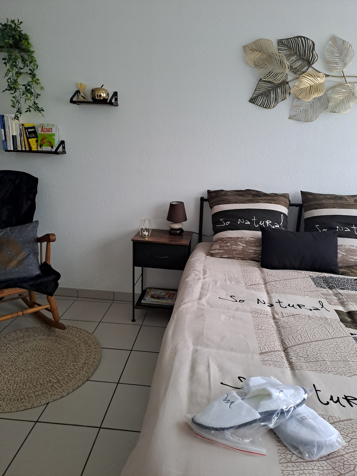 Bienvenido a nuestra encantadora dependencia con cocina y escritorio. Podemos acomodar de 2 a 3 personas. Para dormir, hay un sofá cama y una cama individual. También puedo poner a su disposición un kit para bebés (cuna, trona...) Espacio exterior con terraza sobre el alojamiento. Alojamiento accesible para personas con movilidad reducida. Mietesheim se encuentra en 12 km de Haguenau A 14 km de Niedrebronn-les-Bains 30 km de Estrasburgo