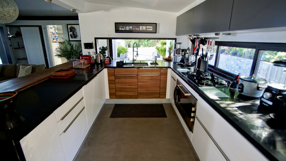 Situada en las alturas de Vitet con una vista extraordinaria con vistas a los Grandes Fondos. Esta casa con encanto criolla es una invitación a la relajación y promesa de serenidad, enclavada entre el mar y la montaña. Ubicada en Vitet Hill, esta encantadora casa criolla es una promesa de relajación y serenidad. Espacios al aire libre e impresionantes vistas panorámicas al mar y a las montañas con vistas a Grands Fonds. -10 min en coche > Grand cul de Sac Lagoon (esnórquel). - 10 min en coche > Lorient Beach (tienda de alimentos, panaderías).