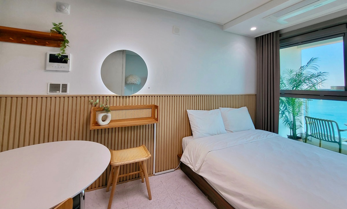 # 135 # Haeundae Panorama Ocean View # Abierto # A 5 minutos a pie de la playa # Opción de piscina # Blanco # Ropa de cama de hotel