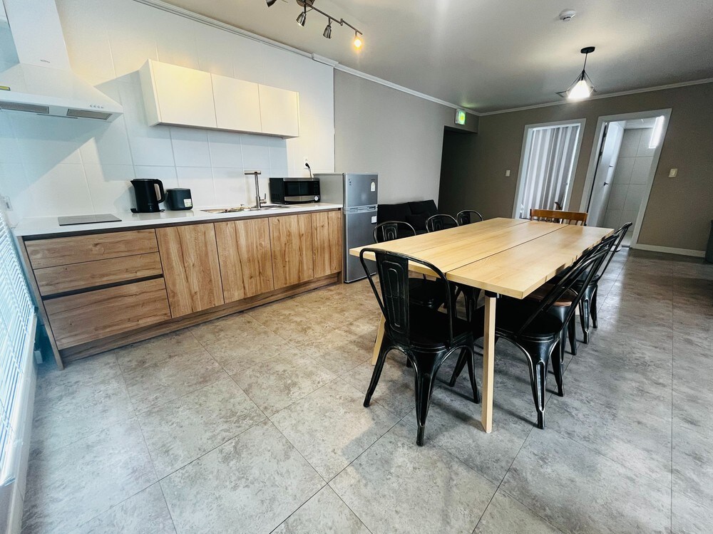 ✨ Alojamiento asequible en Haeundae que satisface todas las ubicaciones, espacios y precios 👥 Personas Estándar 2 personas/máximo 3 personas Tarifa adicional por exceder el número estándar de huéspedes (consulta para huéspedes adicionales) Reuniones de grupo · MT · Reuniones · Talleres, etc. Disponible para alquiler 🛏 Ropa de cama 1 cama tamaño queen + 1 cama individual 🎬 Entretenimiento TV portátil de 55 pulgadas (Netflix, YouTube, varios OTT y TV por cable) 🧴 Insumos Champú, acondicionador, gel de baño Pasta de dientes · Cepillo de dientes desechable · Limpiador de espuma Toallas · Papel higiénico Utensilios de cocina · Vajilla Refrigerador, microondas, secadora, aire acondicionado, lavadora Plancha para el cabello, plancha de vapor (frente a la oficina del segundo piso) 📍 Ubicación A 3 minutos a pie de la estación de Haeundae. A 2 minutos a pie de la playa de Haeundae Calle principal de Haeundae a 30 segundos Tienda de conveniencia en menos de un minuto Olive Young a 30 segundos a pie ℹ Otro Sin ascensor (usa las escaleras) Almacenamiento gratuito de equipaje antes y después de entrar y salir de la habitación (hay un lugar para guardar el equipaje en las escaleras del segundo piso, sin límite de tiempo)