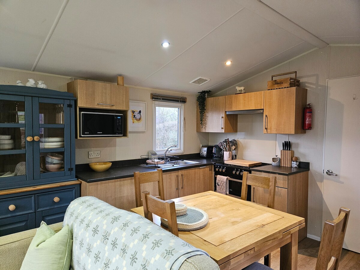 Una acogedora cabaña con todas las comodidades equipadas a un gran nivel, calefacción central y todas las comodidades del hogar, incluido un moderno baño con ducha, cocina con horno, vitrocerámica, microondas, hervidor de agua, tostadora, nevera/congelador. Zona de estar con wifi y TV freesat. Una cuna de viaje y una silla alta están disponibles sin cargo alguno. Ropa de cama, sábanas, almohadas, cojines, toallas, toallas de té, etc. incluidos. Conveniente para Snowdonia, centro de surf local, tirolina, escalada de cuerda, caminar, escalar, andar en bicicleta, se admiten mascotas, aparcamiento junto a la cabaña.