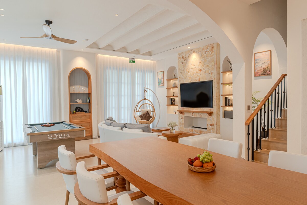 Villa privada en la costa de Ha Long, a pocos pasos de la playa, los cafés y Sun World. La estadía incluye 4 habitaciones con baño, una piscina privada de agua salada, un exuberante jardín y un patio con parrilla. Relájate en tu spa privado con jacuzzi y sauna finlandesa, luego reúnete en el amplio salón o cocina en una cocina totalmente equipada. Ascensor a todos los pisos, Wi-Fi rápido y estacionamiento gratuito. También ofrecemos servicios todo en uno para que tu viaje sea fácil: traslados puerta a puerta, excursiones, boletos para cruceros e itinerarios seleccionados.