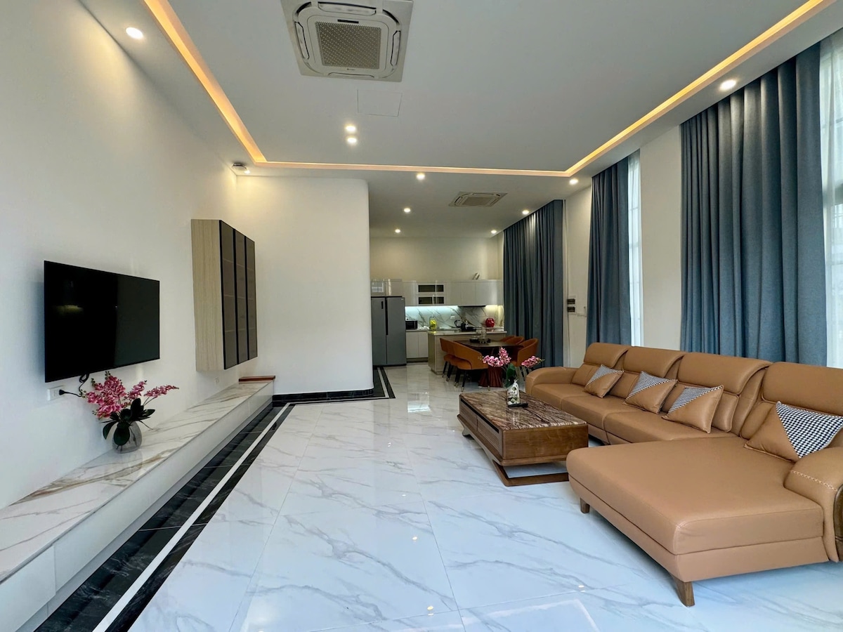 La villa se encuentra en el lujoso resort Bãi Khem🏖️, con 4 amplios dormitorios y comodidades modernas en el estilo Modern Tropical. El diseño minimalista y refinado utiliza materiales naturales como la madera y la piedra, creando un ambiente tranquilo. La piscina comunitaria cubierta ofrece un espacio relajante y sociable. 🏊♂️ A solo 500 metros de la playa, ofrece un fácil acceso a la playa de arena blanca y aguas cristalinas🌊, combinando las comodidades modernas con un estilo de vida tranquilo.