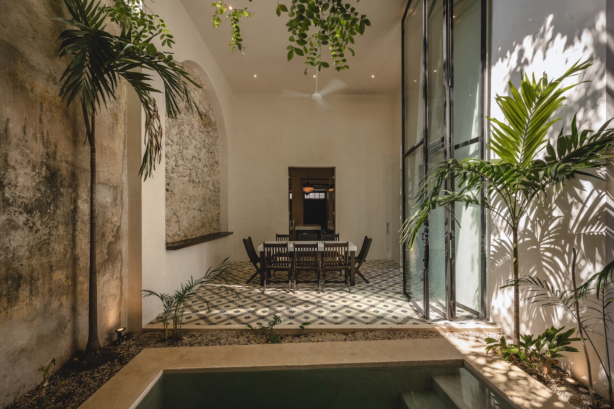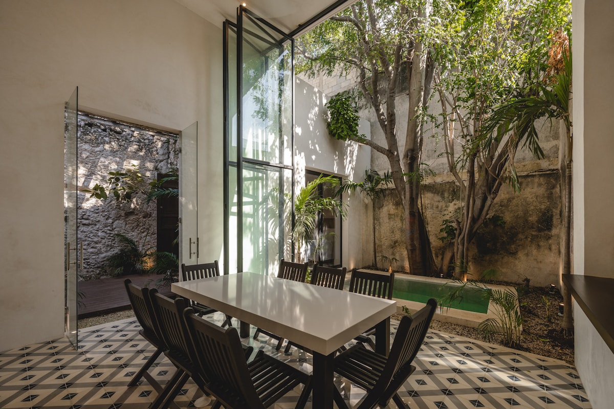 Ubicada en centro histórico, esta casa ofrece estilo y comodidades, así como un fácil acceso a la cultura por la que Mérida es conocida. Pase días relajándose junto a la piscina o utilice nuestro servicio de conductor para días de playa, visitando pueblos o ruinas antiguas. Experimente la vibrante vida nocturna local o cene con nuestra experiencia de chef privado. Café, restaurantes y el mercado local a menos de una cuadra de distancia.