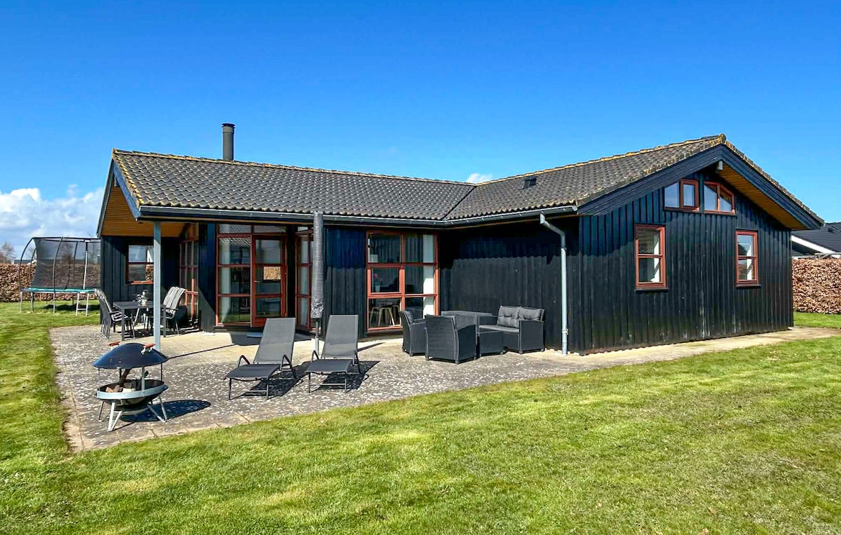 Disfrute de unas agradables vacaciones en esta casa de vacaciones bien equipada, que se encuentra a solo unos cientos de metros de la playa de Flovt. Una hermosa casa de verano donde toda la familia puede disfrutar tanto al aire libre como en el interior. La casa está situada en una gran parcela privada con jardín y 2 terrazas. Hay un arenero, una cama elástica, una parrilla de bolas, una zona de fogatas, juguetes, baloncesto y hermosos muebles de jardín. La casa tiene 3 dormitorios, así como un altillo, 2 baños y sauna y spa. Una cocina abierta y una gran sala de estar con grandes ventanales.