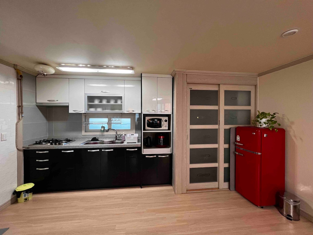 Hola Nuestro alojamiento está ubicado en el centro de Nampo-dong y se tarda unos 3 minutos a pie desde la estación de Jagalchi. A excepción de la azotea, todo en la imagen será utilizado solo por tu grupo. Gracias :)