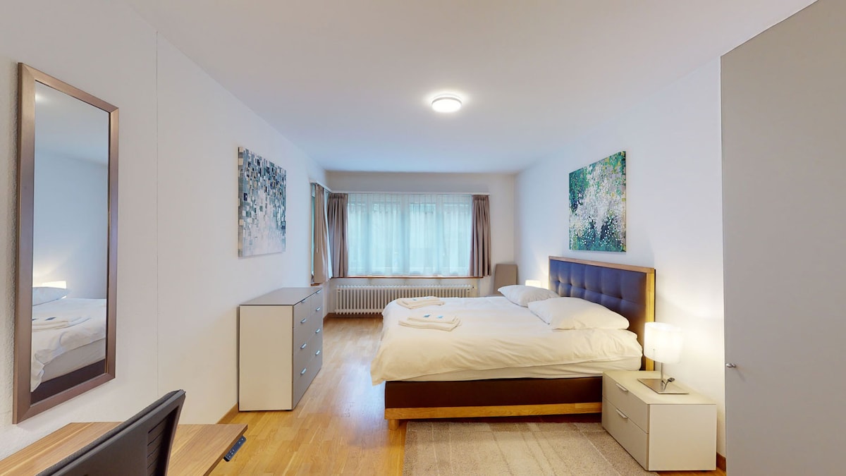 ¡Te damos la bienvenida a nuestro departamento elegantemente amueblado con vistas impresionantes del lago Zúrich! Este espacioso alojamiento ofrece la combinación ideal de comodidad, diseño y ubicación céntrica, perfecta para una estancia relajante en Zúrich. 2 cómodos dormitorios con camas de somier garantizan una buena noche de sueño, mientras que las ventanas también ofrecen una vista del lago. Se puede llegar al centro de la ciudad de Zúrich en solo 8-10 minutos en coche o transporte público.