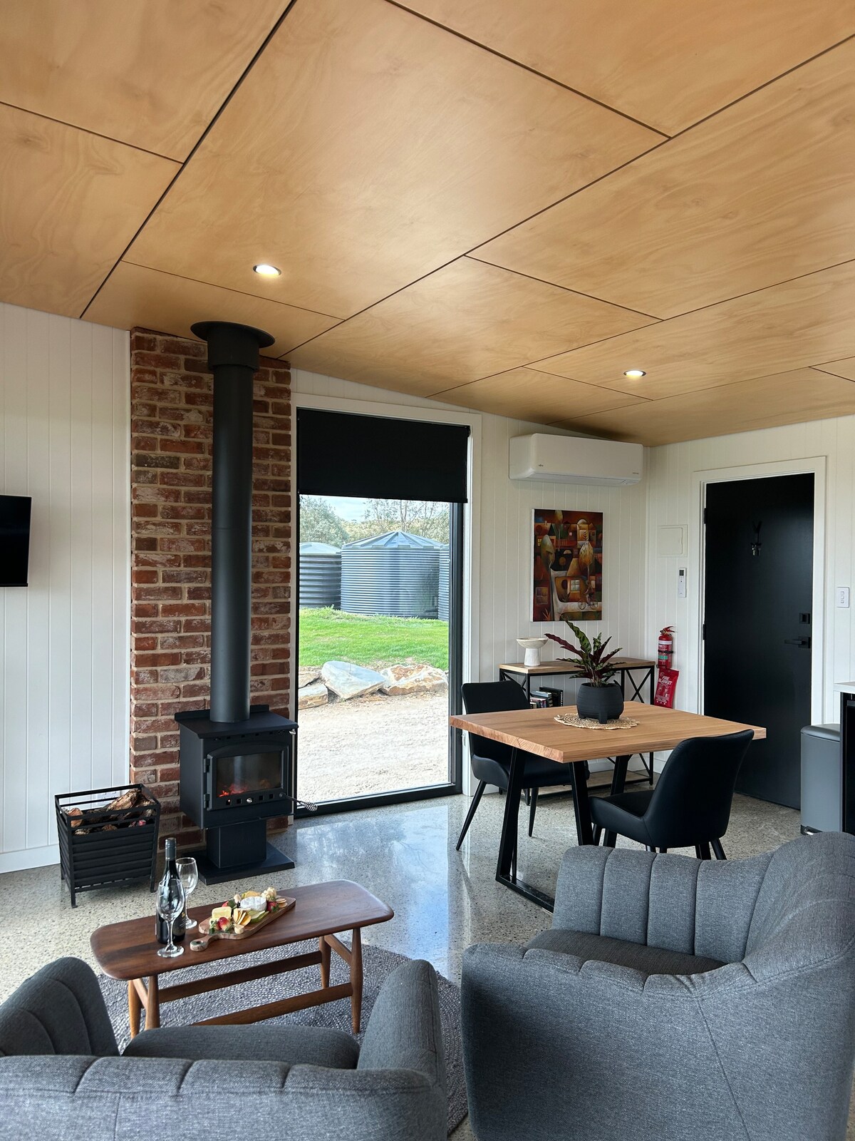 Bienvenido a The Nook, tu acogedor refugio enclavado en las serenas colinas de Adelaida. Este moderno estudio es el refugio perfecto para aquellos que buscan tranquilidad y comodidad en medio del abrazo de la naturaleza. Con su diseño elegante y sus servicios cuidadosamente pensados, The Nook ofrece una mezcla perfecta de vida contemporánea y encanto rústico. Ya sea que estés bebiendo vino en el patio privado, explorando los viñedos cercanos o simplemente relajándote junto a la chimenea, ven a experimentar la belleza de las colinas de Adelaida en nuestro oasis.