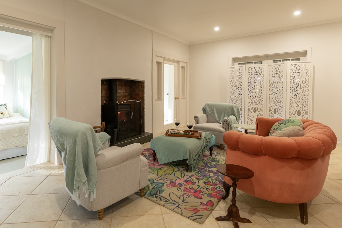 Lejos de una carretera principal, por un camino de entrada privado, se encuentra Claret Ash Cottage. A solo unos pasos de la puerta principal hay un jardín orgánico de flores y hierbas donde se cultivan plantas para productos para el cuidado de la piel. Te invitamos a explorar la propiedad de 33 acres y una visita obligada es la vista panorámica desde la colina. El tranquilo camino de tierra bordeado de árboles que hay detrás es un sendero perfecto para caminar. Esta granja está a 35 minutos de Adelaida y a solo 10 minutos en coche de tiendas o restaurantes locales. Te invitamos a experimentar la vida en una granja en funcionamiento.