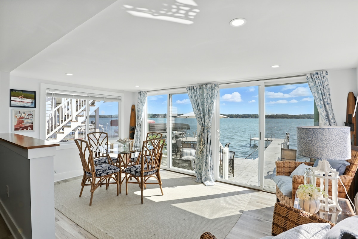 *El anfitrión ha cubierto el 100 % de las tarifas de Airbnb de los huéspedes en esta propiedad privada de 90 pies frente al lago* Cena en el porche mientras contemplas la puesta de sol. Asa nubes junto a la hoguera. Salta del muelle y nada en agua dulce o flota junto a los kayaks proporcionados. Haz un tour de vinos en barco. Camina por senderos y observa las cascadas en nuestros parques estatales locales. Alquila un barco en el puerto deportivo de al lado. Para parejas, familias, amigos y entusiastas del agua, ¡esto lo tiene todo!