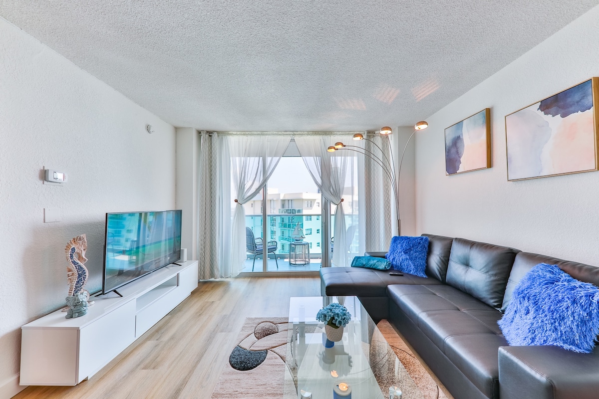 Discover Your Ideal Retreat! We present an apartment that combines comfort, elegance, and warmth, located near the beautiful beaches of Hollywood and Hallandale Beach, as well as restaurants and the airport. This space has been designed with every detail in mind to offer you an unforgettable experience. Every corner of the apartment has been carefully decorated to provide a relaxing and sophisticated atmosphere. 8 minutes from the beach,15 minutes from the airport,and 15 minutes from Hard Rock.