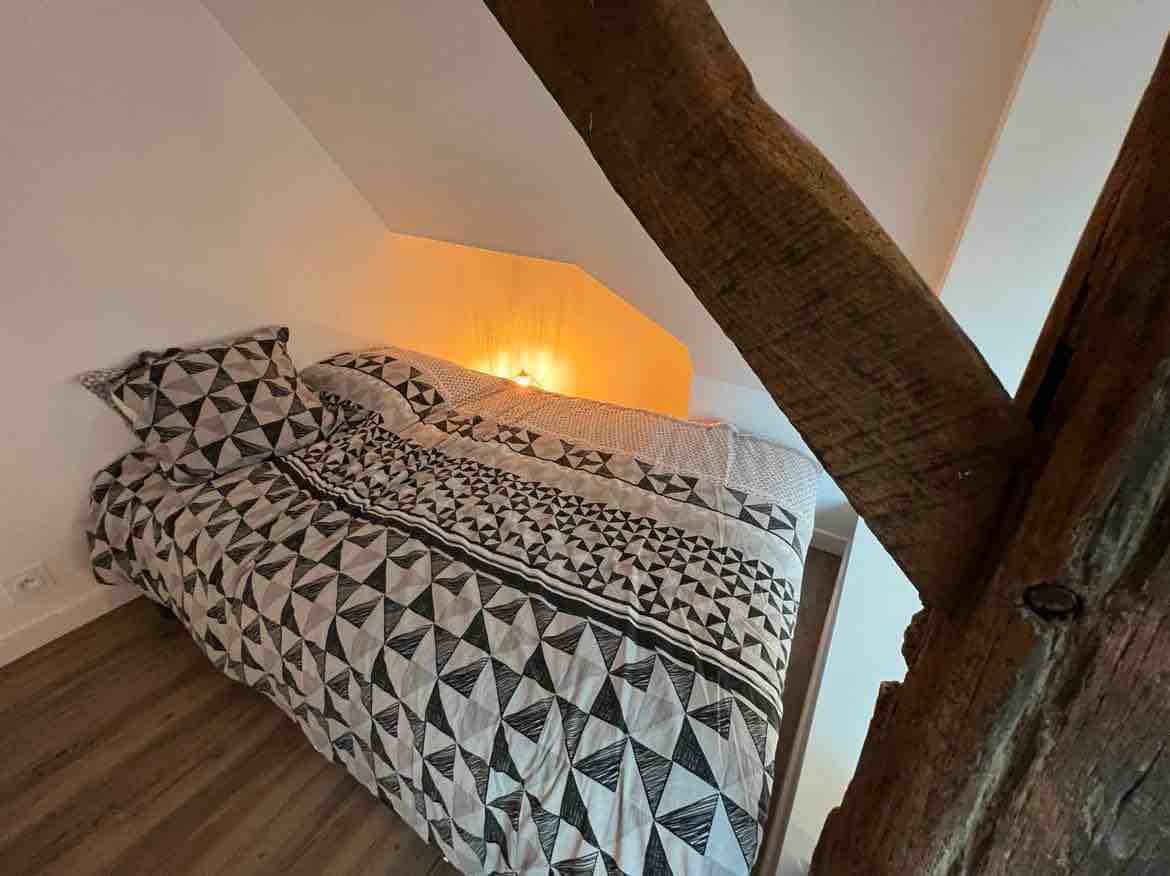 Serán bienvenidos en mi apartamento, Vivimos justo al lado . Lo he decorado y arreglado con mucho gusto. Espero que se sienta a gusto. Quería hacerlo acogedor, luminoso y cómodo. Tiene dos inconvenientes: el acceso es a través de una escalera de caracol estrecha, por lo que no siempre es fácil con maletas grandes. A pesar del aislamiento, puede hacer calor en verano, ya que está en el ático.