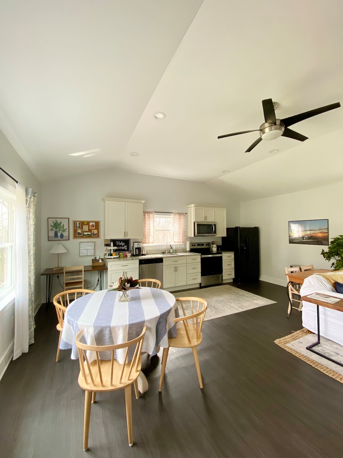 Vuelve a conectar con tus amigos y familiares en nuestra casa de huéspedes recién remodelada. La sala de estar principal es abierta y llena de luz. Un gran lugar para disfrutar de una noche de juegos en familia. Los dormitorios son del tamaño adecuado para disfrutar de una noche de sueño reparador. ¿Necesitas lavar la ropa? No hay problema, esta casa de huéspedes tiene su propia lavandería con lavadora y secadora apilables. Asa s'mores junto a la chimenea del patio trasero y disfruta viendo las luciérnagas desde la terraza.