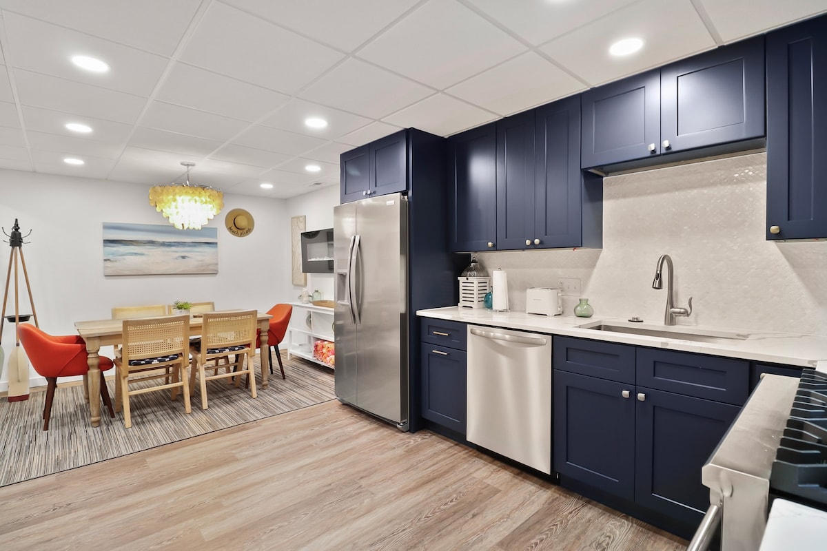Camina hasta la playa y el parque nacional Esta casa recientemente renovada está a solo 2,5 cuadras de la playa y a dos minutos en auto del Parque Nacional en West Beach. El nivel principal de la casa cuenta con una gran sala de estar y comedor, baño completo, 2 dormitorios, cocina moderna, gran patio para entretenimiento al aire libre, parrilla de gas y fogata de propano y patio cercado. El sótano completamente terminado tiene dos dormitorios, un baño completo, lavandería y sala de recreación con una mesa de ping pong de tamaño completo y TV inteligente
