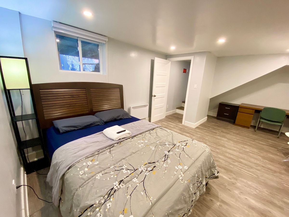 Relájate y recarga energías en este refugio sereno y único. Este apartamento totalmente renovado en el sótano se encuentra en un barrio tranquilo y silencioso, perfecto para relajarse después de un día de trabajo o de turismo. Disfruta de una noche de sueño reparador en la cama doble que te hará sentir como en casa La cocina cuenta con todos los elementos básicos, incluida una tostadora de pan y una cafetera para tu comodidad. Reproduce tus programas favoritos en la televisión inteligente con wifi de alta velocidad: Netflix y relájate fácilmente.