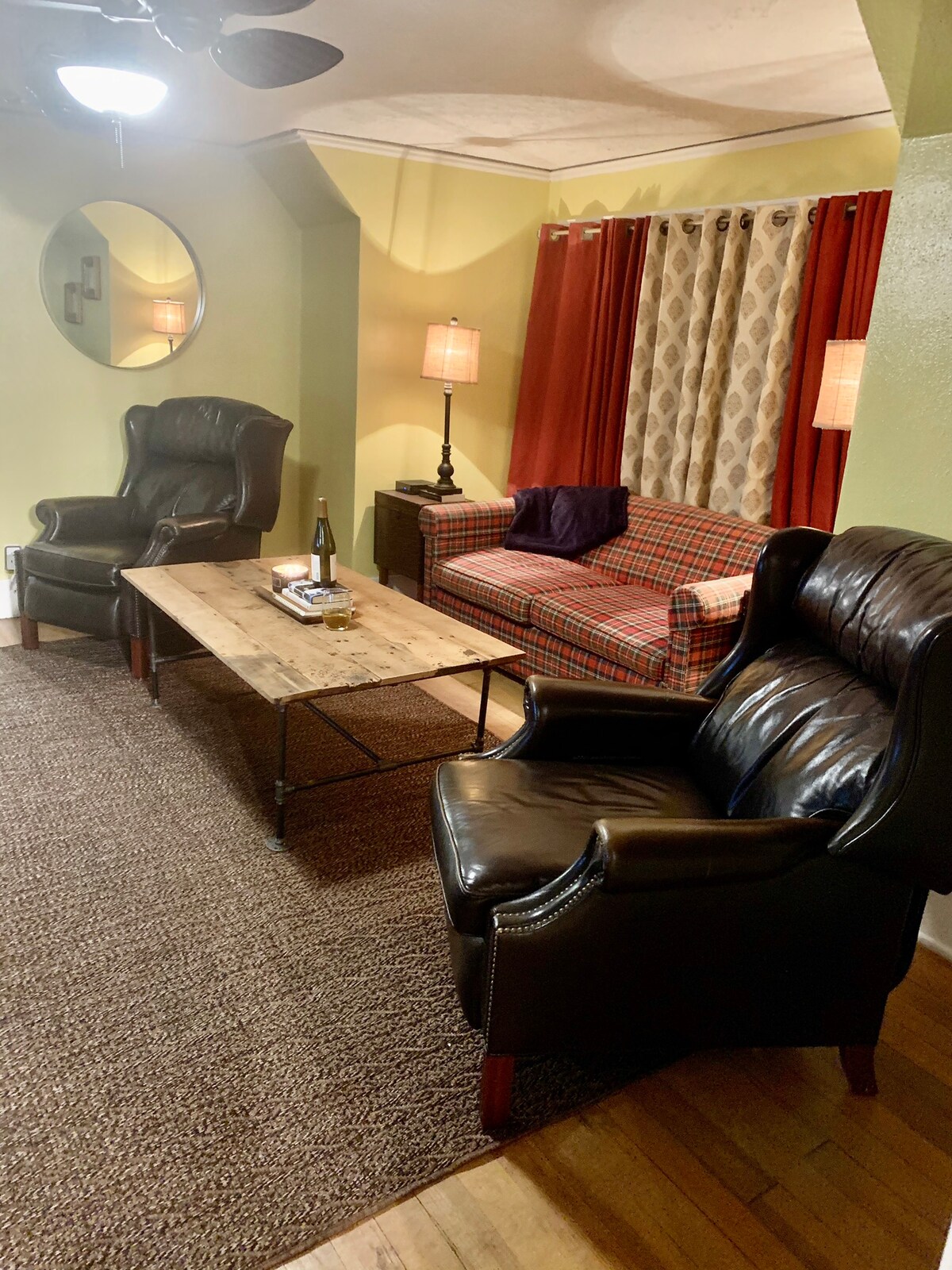 Este bungalow de 1920 fue renovado únicamente para su uso como casa de huéspedes con todos los sistemas eléctricos, de fontanería y de climatización nuevos. Se conservaron todos los suelos de madera originales y la carpintería. Está a solo media manzana de la calle principal de nuestra pintoresca ciudad pequeña, a solo 2 millas de la Interestatal 80.