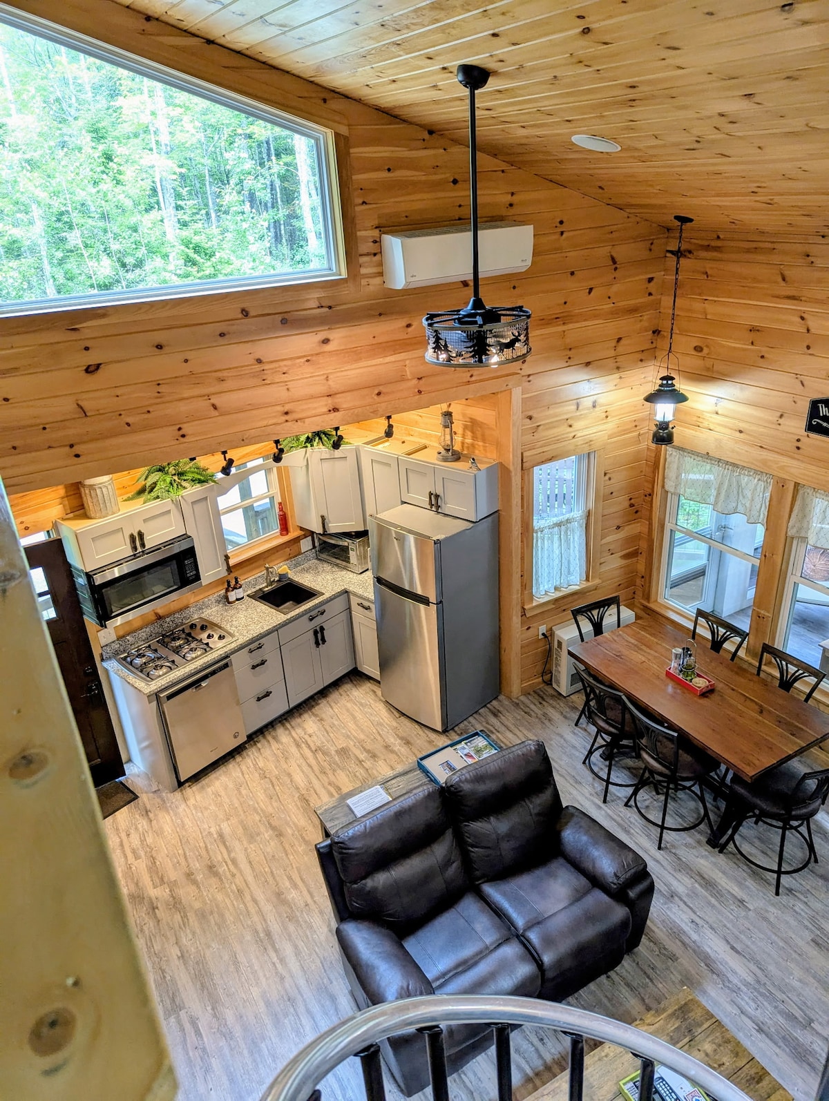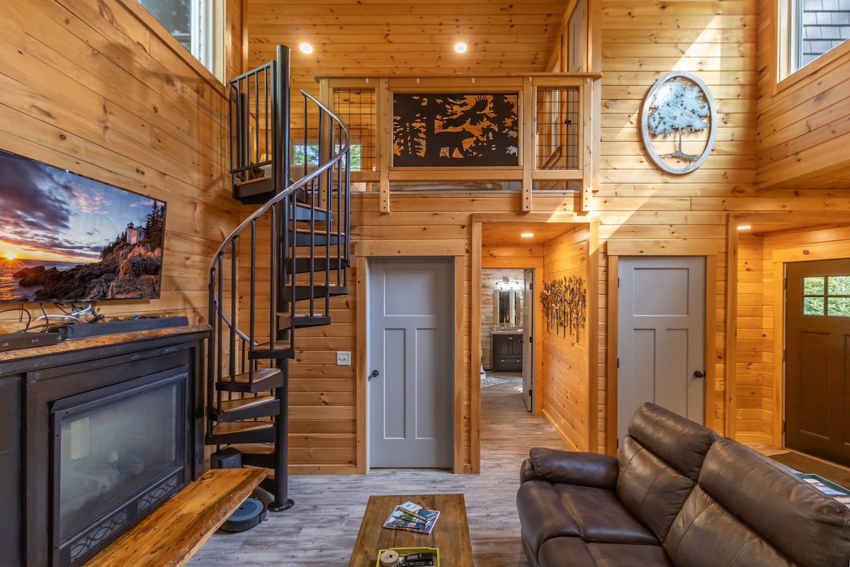 Escape to a secluded luxury treehouse in the forest of Maine. Unwind in the spa-like full bath with a jacuzzi and sauna. Includes 1 bedroom and loft with 2 queen beds, full kitchen, fireplace, 2 screened porches & outdoor shower. Perfectly located for visiting Acadia National Park, ATV trails and scenic drives. Whether soaking in the jacuzzi, relaxing by the fire, or unwinding on the porch to the sound of rustling leaves, this luxury treehouse is a getaway you’ll never forget