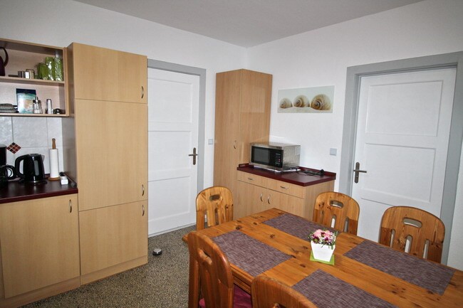El apartamento fue renovado en 2019 y cuenta con colores agradables y muebles claros de estilo rústico. Tiene una entrada independiente delante de la cual hay espacio para un coche. En el interior, la luz cálida con focos de techo, la calefacción por suelo radiante en todas las habitaciones y la decoración cuidadosa proporcionan bienestar. Tanto en los cálidos días de verano (terraza oeste separada de 10 m²) como en los fríos días de invierno (bañera acogedora, Smart TV, selección de Blu-Ray, libros) se puede pasar unas excelentes vacaciones.