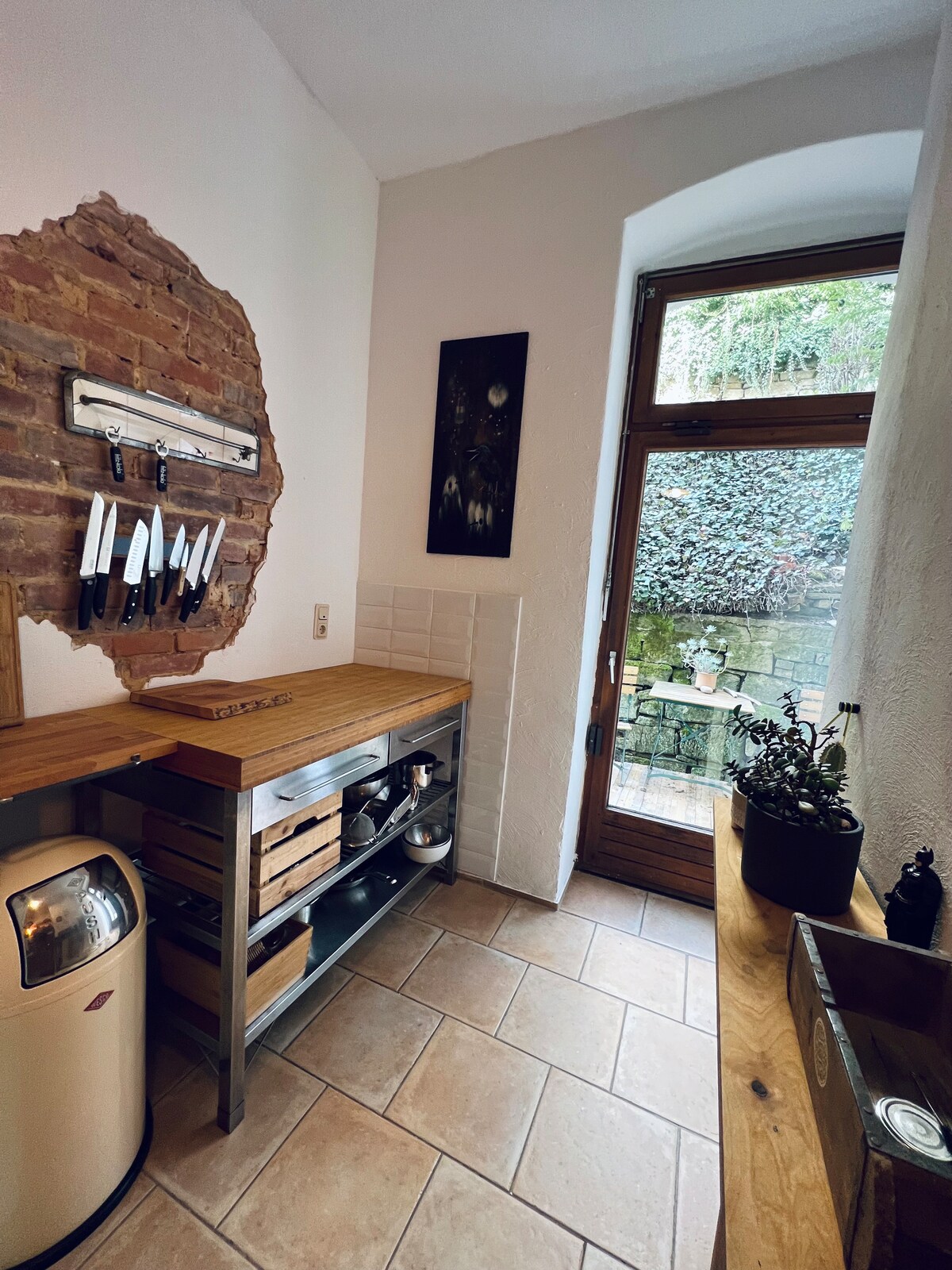 Vivimos en el campo con mucha vegetación y aire fresco y espíritu libre y estamos abiertos a los huéspedes. La panadería, con muebles tradicionales, estufa de leña, altillo para dormir y comodidad completamente atemporal, se encuentra por separado en la propiedad. Junto al edificio residencial (a 40 m de distancia) se encuentra la moderna casa de baños para uso exclusivo de nuestros huéspedes. En nuestra casa, leemos mucho, filosofamos, bebemos buen vino y nos ocupamos de lo esencial en la vida, ¡puramente minimalista! Aventura en lugar de lujo.