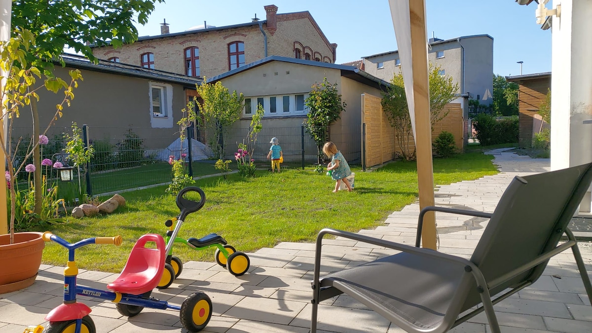 Ya sea para trabajadores de temporada, turistas o viajeros de la ciudad, nuestro apartamento en una ubicación tranquila y céntrica ofrece espacio para un máximo de 4 personas. El apartamento tiene una entrada independiente. El centro de la ciudad está a unos 2,1 km, las tiendas para las necesidades diarias están en las inmediaciones. Para los niños hay varios parques infantiles cerca y también la conexión con la isla de Rügen está muy bien situada. No solo los bípedos, sino también los cuadrúpedos son bienvenidos.