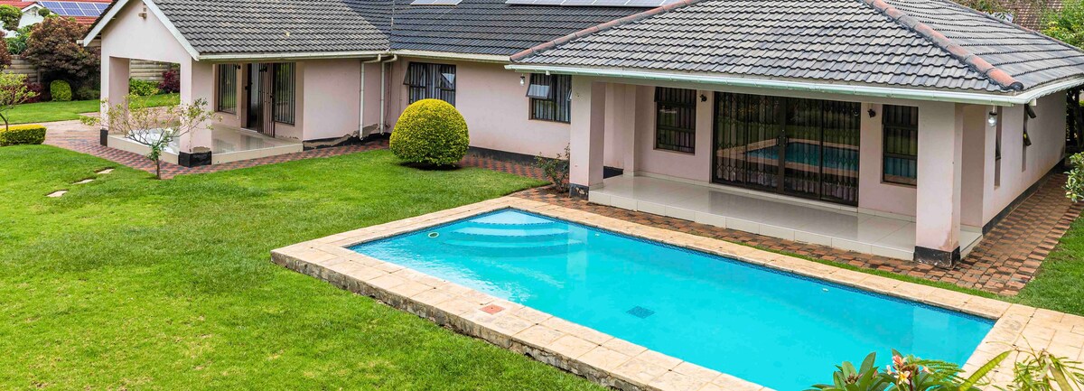 Experience Harare from this well-located home in Gletwyn, conveniently located just off Enterprise Rd, ensuring access to major amenities, shopping malls, and popular restaurants. Our 3 bed property features unlimited Wi-Fi, solar backup power, 2 solar geysers, and 2- 5,000-litre water tanks for reliable utilities. Enjoy generous living spaces, a fully equipped kitchen and dining room, plus outdoor leisure areas including a swimming pool, BBQ area, and chill area overooking a tranquil pond.