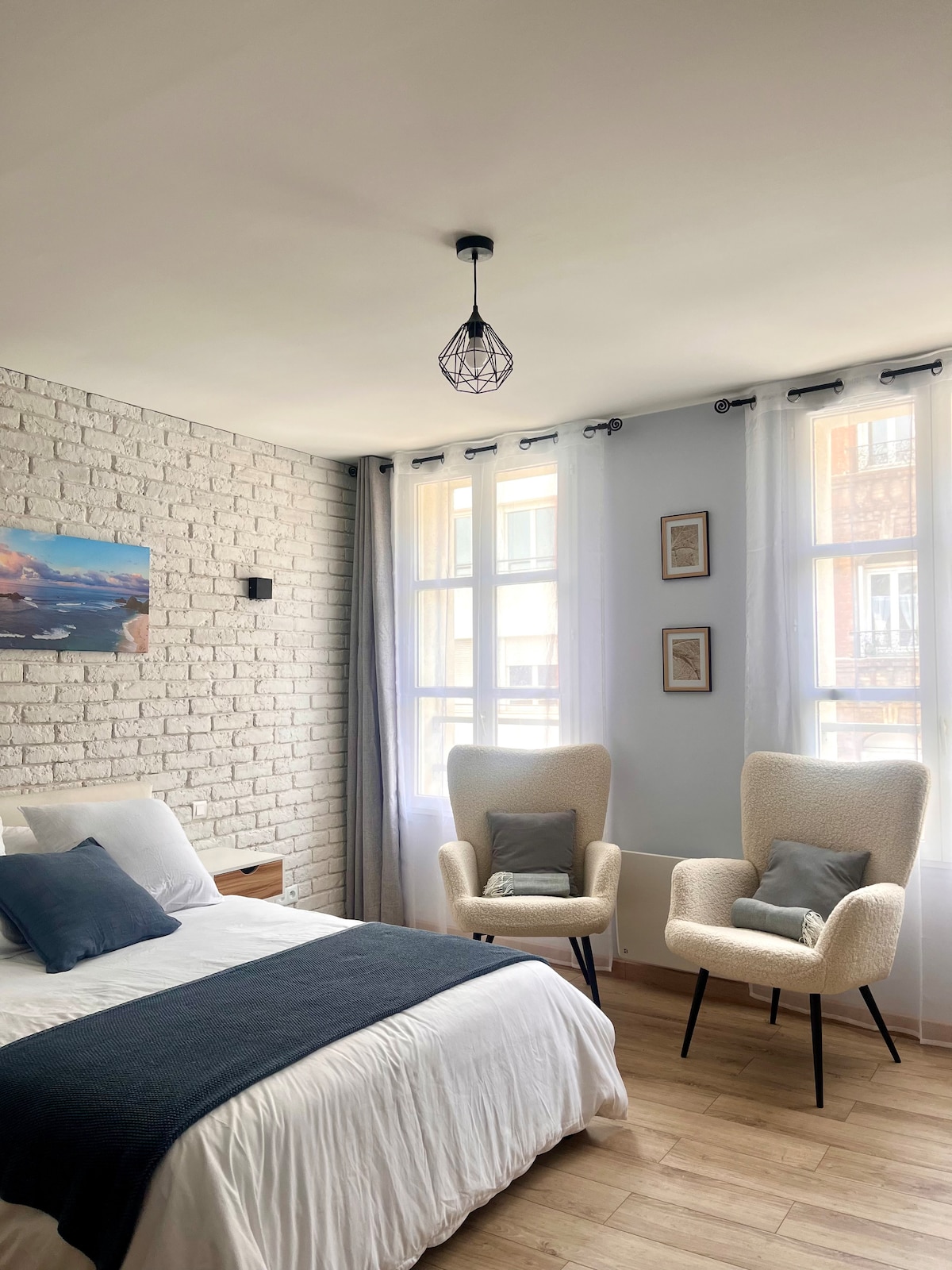 Relájese en este alojamiento tranquilo y elegante. Este apartamento es ideal para 2 y tiene capacidad para 4 personas con un sofá cama (con un colchón real) en la sala de estar. Situado en una zona tranquila con todas las comodidades accesibles a pie, este apartamento elegante y luminoso será perfecto para una estancia exitosa en Le Havre. Enamorados de esta ciudad tan agradable para vivir, no dejaremos de recomendar sus buenas direcciones.