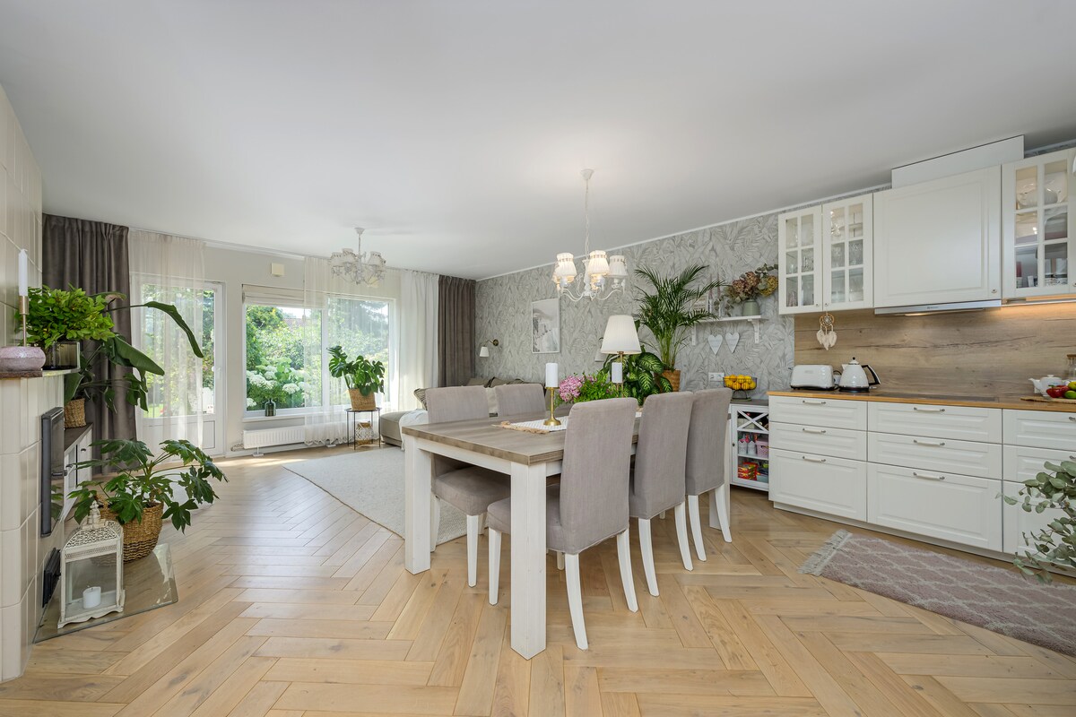 Tu refugio activo y acogedor en Tallin. Nos complace invitarte a nuestra espaciosa casa de 3 dormitorios en el bosque de Nõmme. Es un lugar ideal para actividades al aire libre en primavera: usa nuestra pared de tenis a diario o recorre las rutas de senderismo y ciclismo cercanas. Perfecto para una escapada a la naturaleza cerca de la capital o para trabajar a distancia de forma productiva con wifi y un espacio de trabajo dedicado. Cocina totalmente equipada, jardín grande/barbacoa.