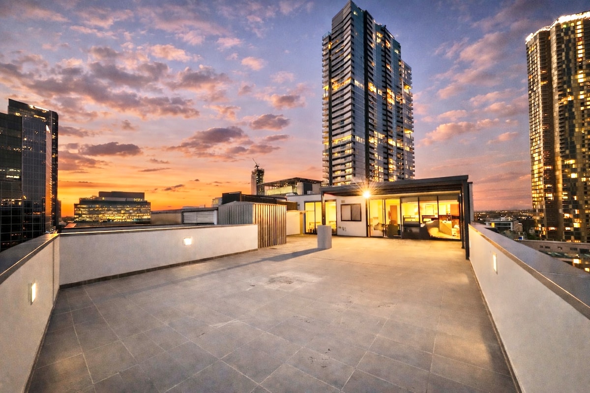 Ático Skyline | Balcón con vista a la ciudad | Estacionamiento