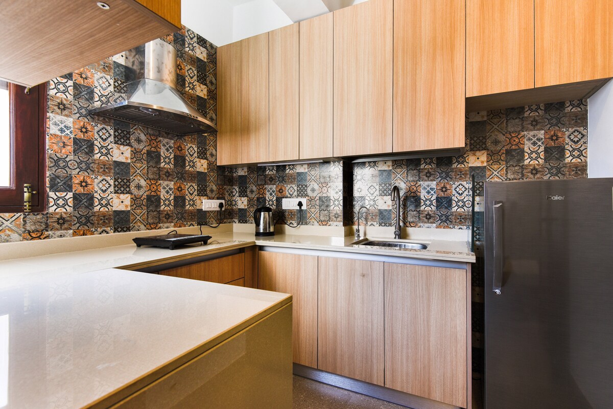 Apartamento de un dormitorio con todos los servicios en una hermosa propiedad galardonada independiente. Perfecto para familias, grupos, empresas y turistas. * Dormitorio + sala de estar + cocina pequeña + baño+ balcón/ patio * WiFi gratis, TV por cable y servicio de limpieza diario * Gimnasio, biblioteca, mesa Tt * 24*7 Security & Power Back Up (según las reglas del gobierno) * Servicio de pago de FnB disponible y desayuno a 200 rupias por persona. * Si te gusta el apartamento, guarda en♥♥ tu lista de deseos *