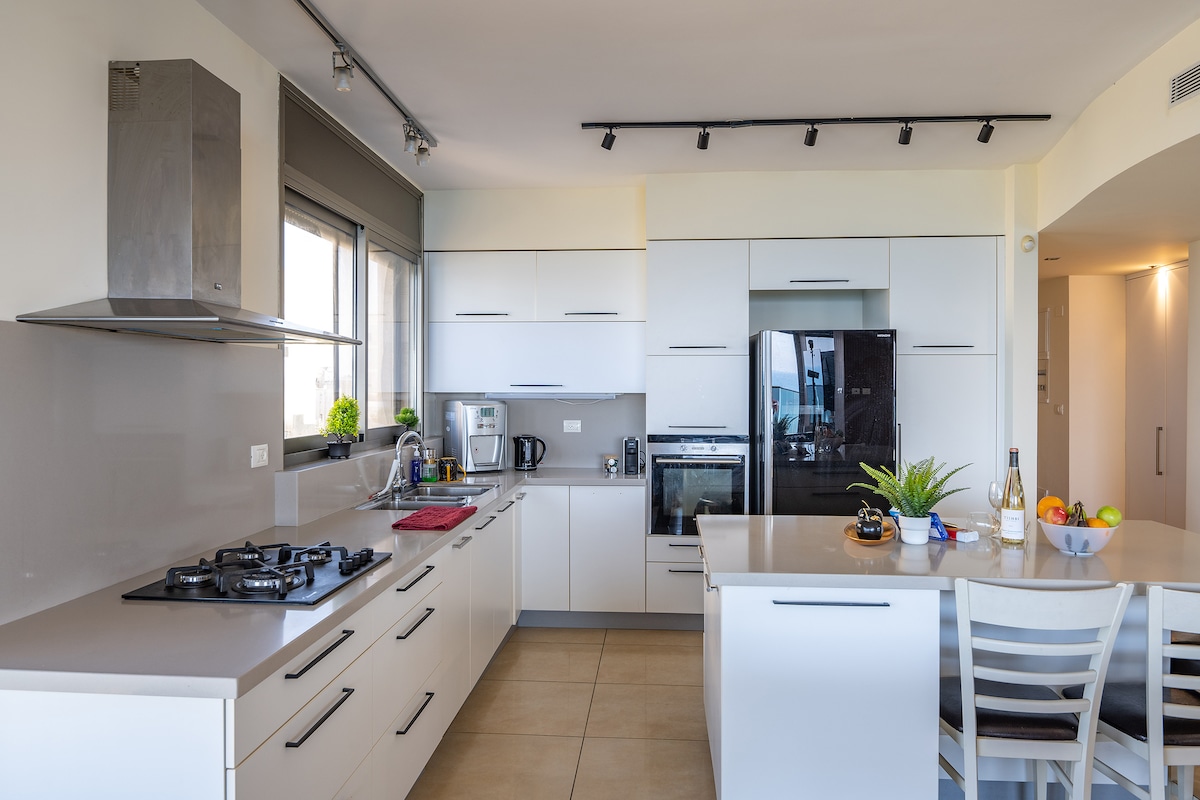 🌴 Lagoon DREAM: ¡alquiler vacacional de lujo en Netanya! Impresionante vista al mar🌅, lujoso spa con jacuzzi🛁, mesa de billar profesional🎱 Una enorme sala de estar, una cocina totalmente equipada y un balcón soleado con un verdadero ambiente de libertad. Perfecto para familias numerosas, parejas o grupos que quieren unas vacaciones en un nivel diferente. Diseñado para 8 huéspedes Pero puedes enviar hasta 15. Envía un mensaje 💌