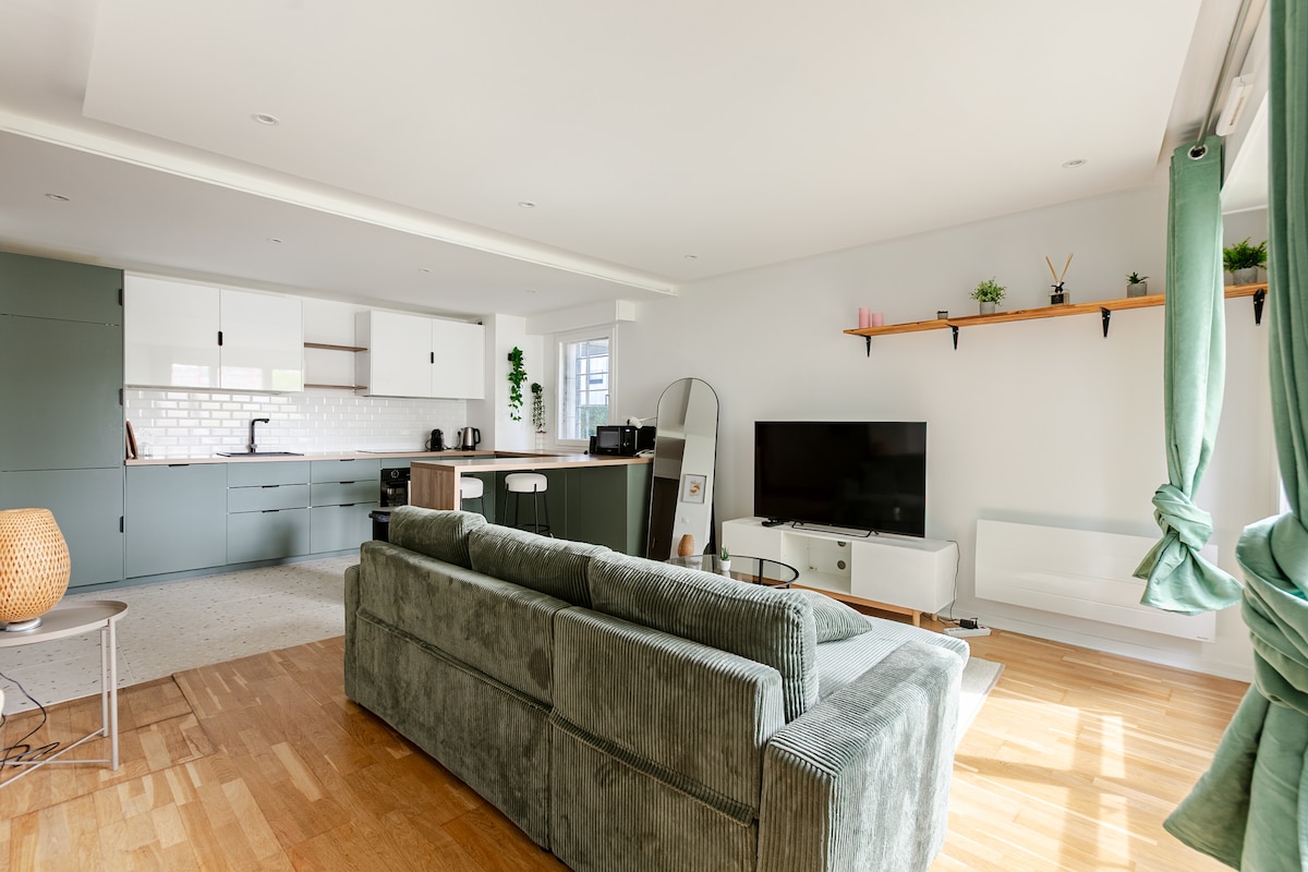 Apartamento tranquilo y sin vecinos enfrente cerca de La Défense Arena (a 200 metros a pie). Moderno, amplio y luminoso, este alojamiento está idealmente situado para eventos, visitas o estancias profesionales. • 3 personas máx. (cama «queen size» y sofá) • Wi-Fi gratuito, cocina americana equipada, lavadora/secadora y lavavajillas. • A 5 minutos a pie del RER A y E. A 10 minutos a pie de La Défense (RER A, E, L, U, T2, M1) ¡Aproveche la ubicación para realizar sus desplazamientos con facilidad!