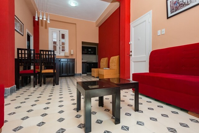 Este Hotel boutique fundado por los jóvenes artistas cubanos, Greta Reyna y Adonis Ferro propone un espacio de encuentro para los amantes del arte. El apartamento, ubicado en el primer piso y de fácil acceso a travez de la escalera común o el ascensor, cuenta con dos habitaciones y sus baños privados. Este edificio de estilo ecléctico fue construido en los años 30 por el antiguo propietario del Hotel Nacional para sus huéspedes VIP. Por ello cada detalle constructivo es una joya en sí.