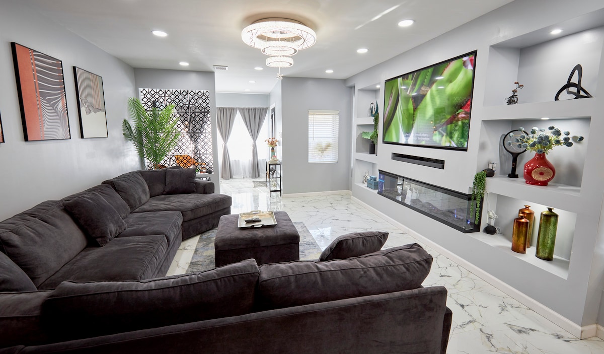 Suite moderna con chimenea, patio trasero, lavandería gratuita