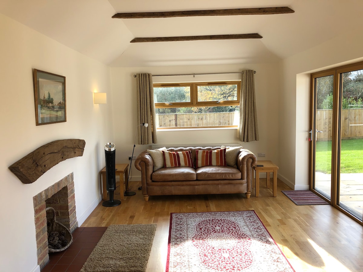 Luxury single storey farm building with its own private garden overlooking a pond, patio and outdoor seating area with fire pit, BBQ and Scandinavian wood fired hot tub making it the perfect relaxing retreat for couples. Perfect for midweek escapes, work-from-the-country stays and last-minute breaks. Sleeps 2. Special occasion? Request a a bottle of Bolney Bubbly and some fresh flowers. Book a massage or a couples massage. Two couples? Why not also book our Shepherd's Hut - see other listing