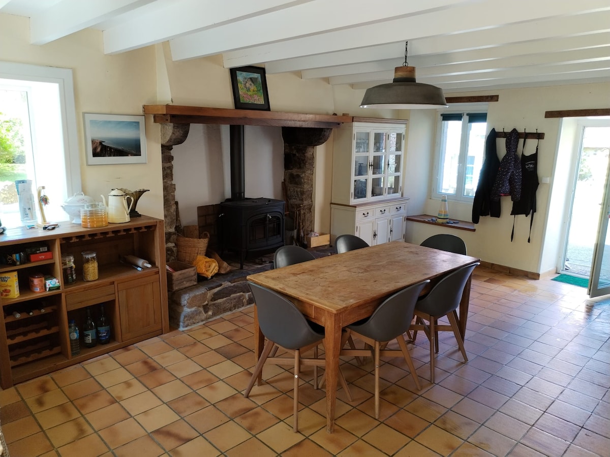 Casa de vacaciones aislada frente al mar, en la "pequeña Irlanda". En su jugo, está en proceso de mejora. Idealmente ubicado en el GR223. Contemplativo o deportivo, esta casa entre la tierra y el mar es para usted. 3 dormitorios, una sala de estar/cocina frente al mar y un capullo donde refugiarse cuando la naturaleza está demasiado presente! También una terraza y un jardín. La casa tiene vistas a la playa de guijarros y arena (durante la marea baja). cf ecalgrain point com