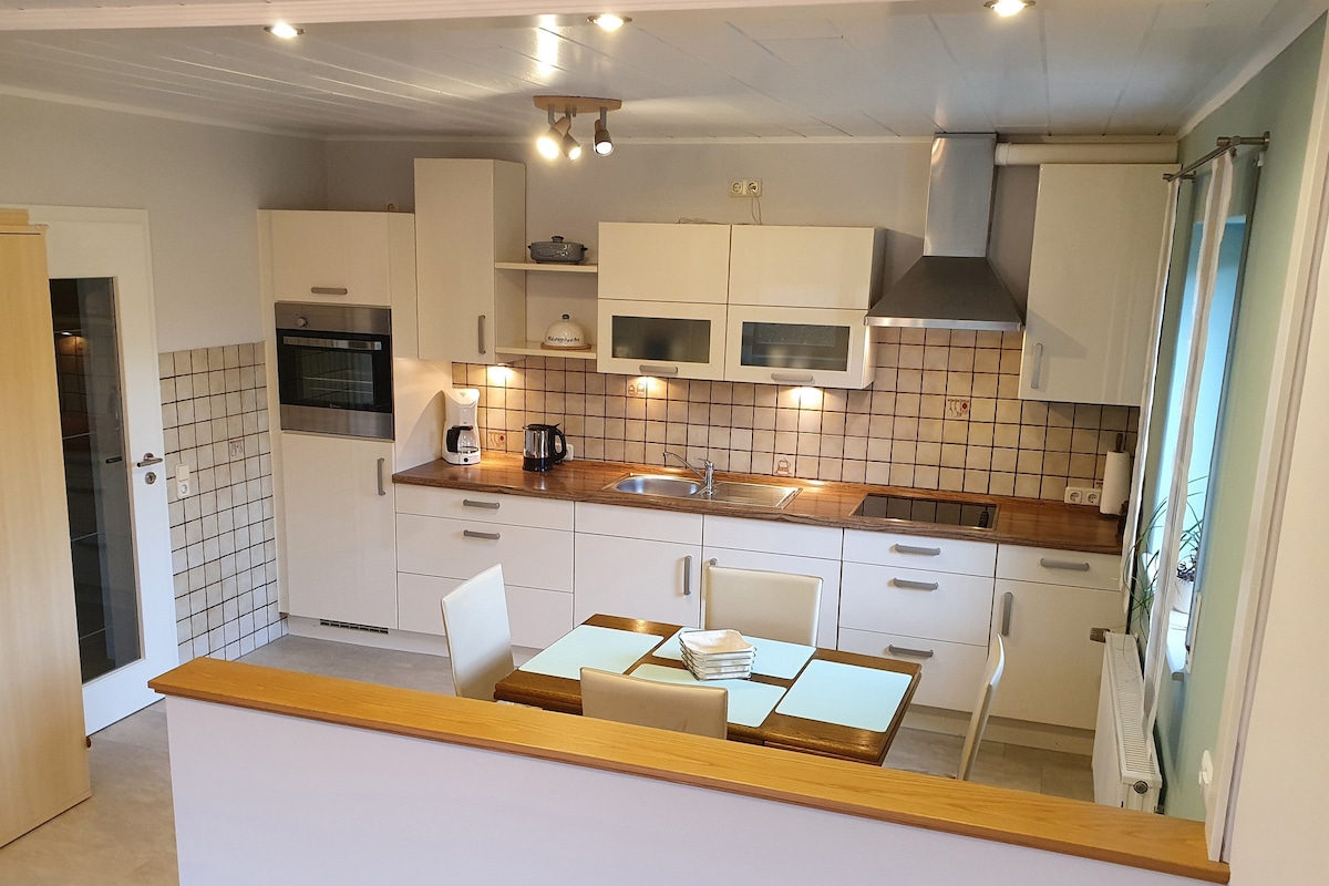 Villa modernista única en un pequeño pueblo en el parque natural de Eifel, con un amplio jardín (2000 m2). Para cualquier persona a la que le guste hacer senderismo, andar en bicicleta, montar a caballo o simplemente relajarse. Totalmente equipado. Sauna de infrarrojos, mesa de ping-pong, WiFi, TV vía satélite. Punto de partida ideal para explorar más a fondo el Eifel. Adecuado para 8 personas. A 10 minutos de Dreiländer Ecke (Du-Lux-Be), Lieja, Trier a 60 minutos en coche. En invierno esquiando en el Schwartzer Mann, a solo 20 minutos en coche.