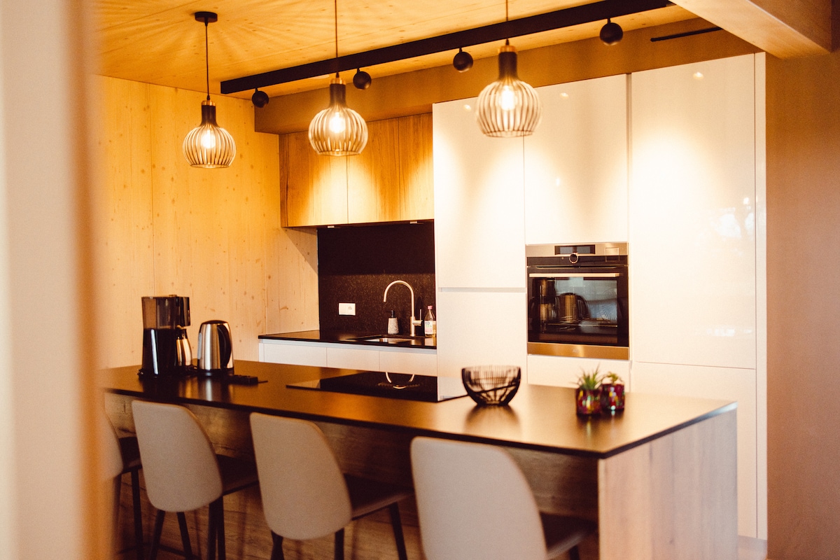 ¡Casa diminuta hecha a mano con cariño! Vida moderna en un espacio pequeño: calefacción por suelo radiante, ducha caliente, acogedora sala de estar con vistas panorámicas y una cama abuhardillada con vistas. La cocina incluye lavavajillas, nevera con congelador, cocina de gas, sofá grande, wifi y proyector. Exterior: terraza privada, barbacoa y chimenea, gran jardín. A solo 10 minutos del embalse, ideal para practicar deportes acuáticos y relajarse. Senderos para caminar justo fuera de la puerta, buenas conexiones de autobús y tren. Aparcamiento disponible.