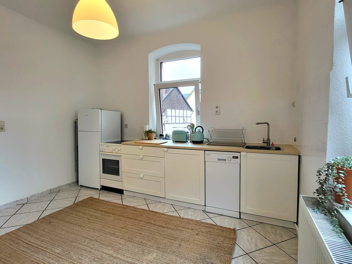 Du bewohnst ein Haus in einem denkmalgeschützten Fachwerkensemble von 1774 in direkter Umgebung von Detmold, ausgestattet mit Fittnes, Kino, Gartenlaube und freiem Blick auf den Teutoburger Wald. Komplette Küche, Infrarotsauna, gemütliche Stube mit Ofen- und Elektroheizung. Schlafzimmer mit Lehmwänden, ein zweites unter dem Dach. Garten vor dem Haus zur alleinigen Nutzung. Kinder und Haustiere willkommen. Supermarkt 1,1 km, City 3,5km entfernt. Elektrische- oder Ofen- Heizung Brennholz incl.