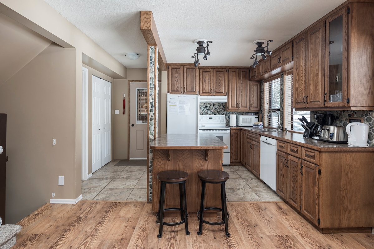 ʕ•ᴥ•ʔ Pet Friendly ♨ 4-5 person hot tub on covered side patio Zz Sleeps 8 comfortably and up to 9 》2min Drive/ 10min Walk to Ski Resort &Pub (check out Sasquatch Mountain Resort for hours) 》Wood Burning Stove (1 bag of wood per booking) 》TV with Roku - Cast your own mobile Netflix 》Bluetooth Speaker 》WiFi (50mbps) 》Parking for 4-6 vehicles (depending on snow) 》BBQ 》Washer & Dryer 》Backyard firepit (snow covered Nov-May) * Water Dispenser/Ice Maker in Fridge do not work ❆Snowy Owl❆