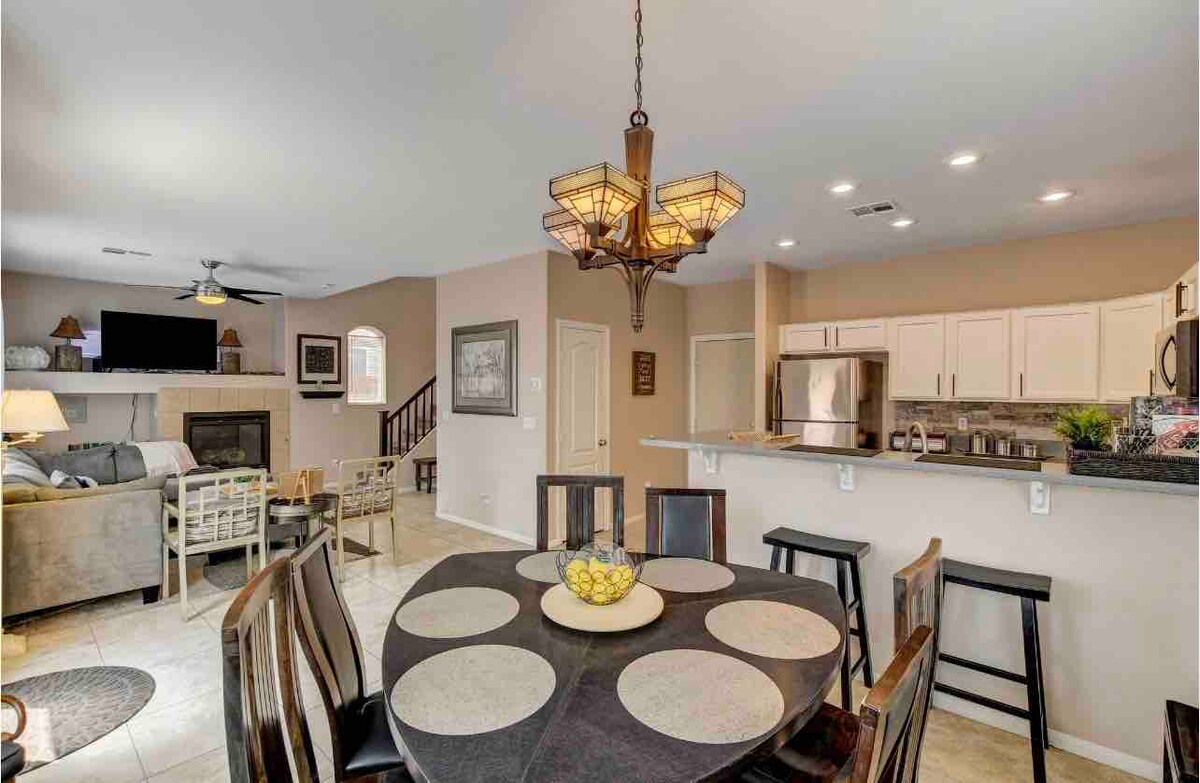 Disfruta de la comodidad y tranquilidad de esta comunidad del suroeste "Sunset-Pass Home" (aparcamiento en garaje). Un espacio encantador para descansar y relajarte después de un día ajetreado, ya sea de trabajo o de ocio. Fácil acceso a todo lo que Sin City tiene para ofrecer y a 8-10 min (5 millas) de distancia del letrero de neón "Welcome to Fabulous Las Vegas" y del centro de comedor/compras al aire libre TownSquare y LV South Premium Outlets y Allegiant Stadium. A poca distancia de tiendas de comestibles y farmacia y restaurantes abiertos las 24 horas cerca. Directamente desde Blue Diamond a Red Rock Canyons.