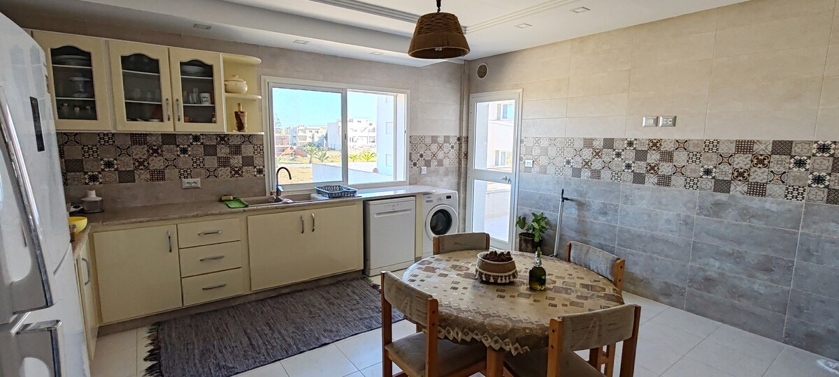 Stunning apartment with panoramic sea views in Chott-Mariem, in a peaceful and secure residence with pool and direct beach access. 🌊 Bright, modern and fully equipped — perfect for couples, families (baby friendly), friends and remote workers. Fast WiFi, secure parking, shops nearby. For an even more fun stay: volleyball, beach tennis, masks & snorkels available on request 🎾🌊 A relaxing setting by the sea for a truly unforgettable stay. ☀️